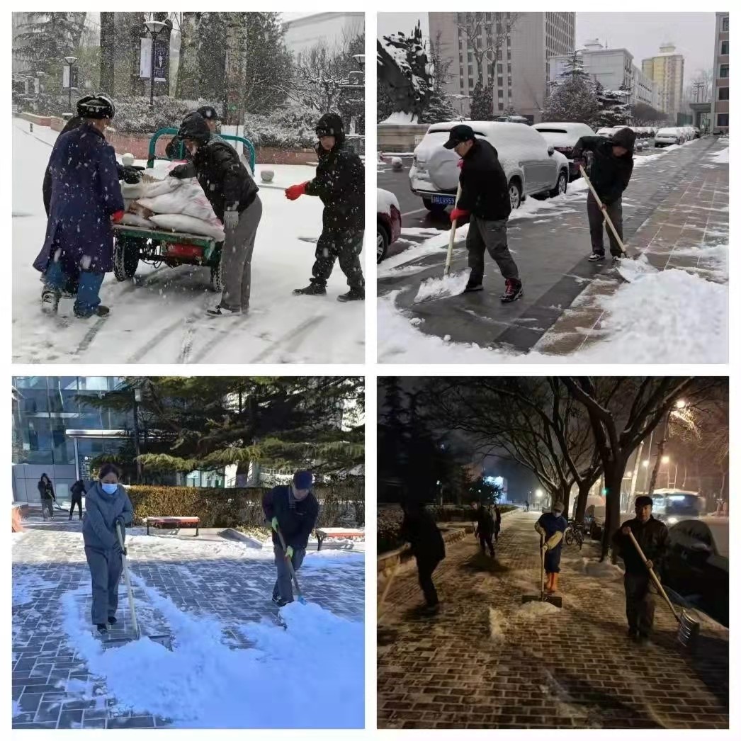 风雪中穿梭保证校园环境寒冷萧索的冬日,校园环保部师傅们冒着严寒,清洁着校园的角角落落。刺骨凛凛的凌晨,图书馆、办公楼等地已然看到保洁人员忙碌的身影;风雪交加之时,道路间、垃圾站已经出现他们辛勤穿梭的背影。雪虐风饕之中,为消除安全隐患,环保员工们早早进入临战状态,除雪工具配备齐全,人员安排准时到位,大雪降临之时不畏严寒、全员出动,加班加点铲雪除冰,只为保障师生的安全出行。
